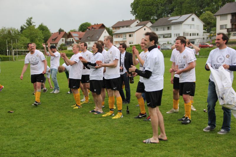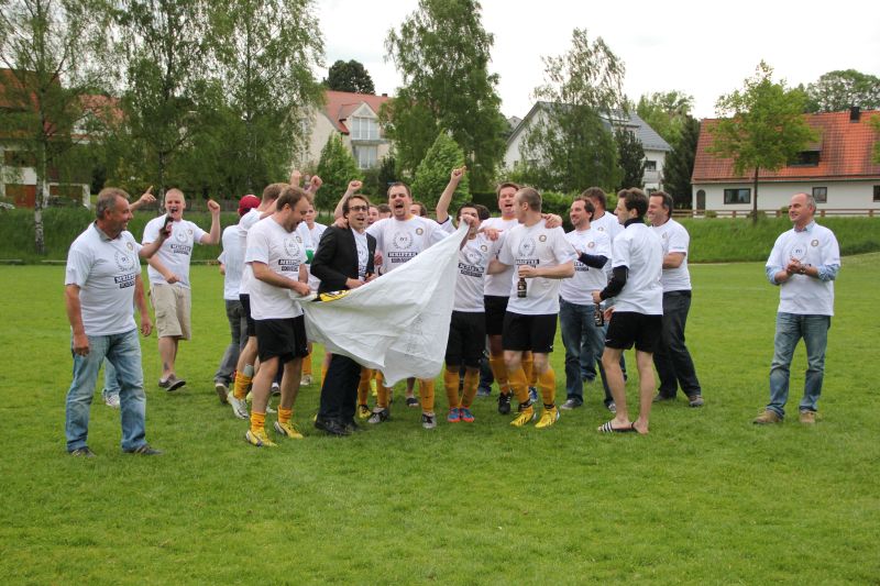 Unter den mehr als 60 Zuschauern fand sich beim entscheidenden Heimspiel am Samstag auch fast der gesamte Vorstand des Vereins ein. Nach dem Schlusspfiff gab es kein Halten mehr, aus den Lautsprechern schallte "We are the Champions", die Mannschaft stimmte "Nie mehr 12. Liga" an.