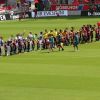 So lobenswert die Idee des Fußballverbands war, ihren Meistern und Titelträgern einen würdigen Rahmen für die Pokalübergabe bieten zu wollen, so sehr verkam die Ehrung selber zum Leidwesen der Beteiligten zu einer Massenabfertigung. Den Zuschauern war nicht einmal klar, welche Mannschaft gerade geehrt wurde, geschweige denn, in welcher Liga und welchem Kreis der Titel errungen wurde. "Nächste Mannschaft." hieß es, "Aufstellung in 2 Reihen.". Dann gab es den Pokal, das Foto wurde geknippst und das war's. Die ganze Zeremonie fand zu allem Überfluss auch noch auf dem Vorplatz zwischen Parkplatz und Stadion statt. Eine lobenswerte Initiative, nämlich der Breite des Jugendfußballs eine Plattform vor einem Spiel der Profis zu geben, wurde durch den gewählten Rahmen leider wieder in eine Nische verlagert, die sie nicht verdient gehabt hatte.