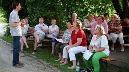Im schattigen Grün konnten die Teilnehmerinnen dem Hopfenzüchter Anton...