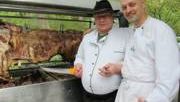 Zur offiziellen Biergarteneröffnung und zum Einstand des neuen Pächters der Theresienhütte gabs zur Feier des Tages einen ganzen Ochsen am Spieß. Schon von Weitem...
