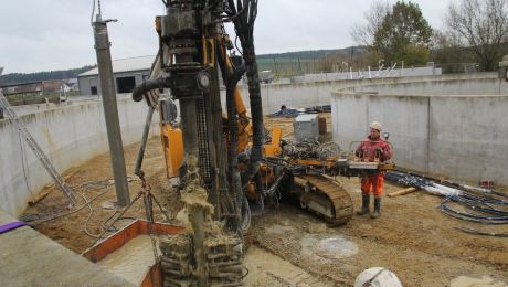 Die Sanierungsarbeiten an der Wolnzacher Kläranlage sind in vollem Gange. Derzeit sind die Arbeiter damit beschäftigt, die 116 Zugpfähle in das erste Becken einzubringen....