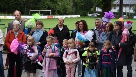 52 neue Schulkinder zusammen mit ihren Eltern und Großeltern begrüßte heute Vormittag Schulleiterin Maria Otto mit einem „Herzlich Willkommen“ im Pausenhof...