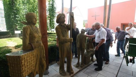 Vor zwei Jahren stifteten die Lauben-Freunde das Hopfenzupferpaar vor dem Deutschen Hopfenmuseum, nun hat das Paar Nachwuchs bekommen - an Buam und a Deandl, wieder...