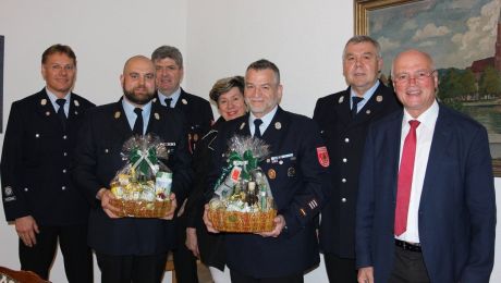 Im Rahmen einer Feierstunde würdigte Bürgermeister Josef Reiser die langjährigen Verdienste des scheidenden Kommandanten-Duos Robin Bauer und Michael Wagner im...