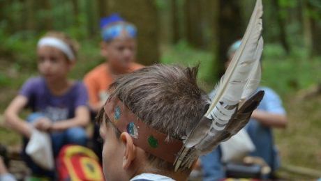 Wie es sich für anständige Indianer gehört, war jeder mit einem reichverzierten Stirnband ausgestattet. Daran befestigt war eine echte oder auch imitierte Feder....