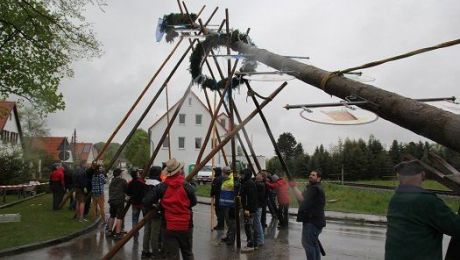 Mit vergleichsweise wenigen Helfern kamen die Dorfgemeinschaft Winden beim Aufstellen ihres Maibaumes aus. Geschätzte 80 Hände mühten sich bei stetigem Regen,...