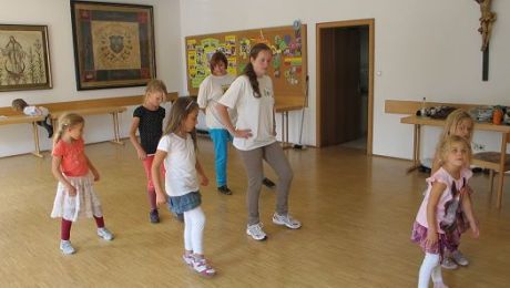 Im Rahmen der Sommerferienspiele Au veranstaltete die Donauschwäbische Tanzgruppe Freising e.V. unter der Leitung von Stephanie Rosenberg einen Tanzkurs für 4...
