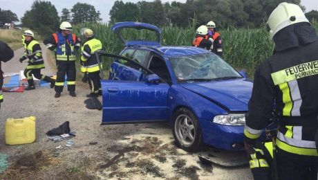 Von der Straße abgekommen und dabei auf der Seite zum Liegen gekommen ist ein Pkw auf der B300 in Höhe von Höhe Starkertshofen kurz nach 17 Uhr. Über die Schwere...
