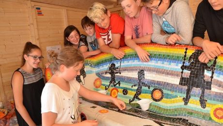 Halbzeit bei einem tonnenschweren Klebeprojekt: Das "Social Sofa" aus Beton soll Menschen zueinander bringen. Die Reichertshofener Mosaikkünstlerin Caroline Jung...