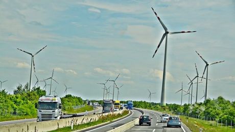 Kleintransporters auf der A9, als ein nachfolgender Lkw auf das Begleitfahrzeug für einen Schwertransport...