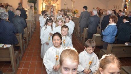 Ein besonderer Tag für drei Mädchen und zwei Buben war der heutige Sonntag: Die fünf jungen Katholiken feierten nämlich ihre Heilige Erstkommunion. Zur Gestaltung...
