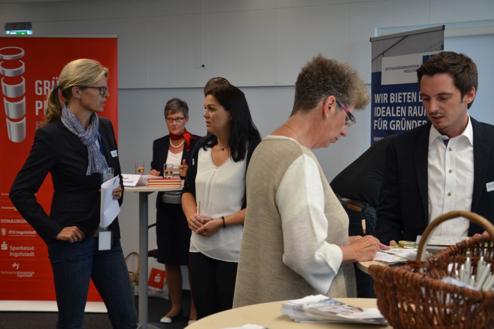 Darüber hinaus waren unter anderen vertreten das Existenzgründungszentrum Ingolstadt, die Aktivsenioren Bayern, Die Bayrische Beteiligungsgesellschaft (Bayern BG), die die LfA Förderbank, die Sparkasse Ingolstadt-Eichstätt sowie Finanz- und Versicherungsberater; und das Unternehmerinnen-Forum aus der Region bot besonders Frauen Unterstützung an. Auch von der Universität Erlangen-Nürnberg vom Institut für Freie Berufe war ein Gründungsberater vor Ort. Das Angebot war also wirklich groß. Und nicht nur GründerInnen haben Beratungsbedarf, auch JungunternehmerInnen, die schon seit einiger Zeit ein eigenes Unternehmen leiten. Deshalb gab es bei den Vorträgen nicht nur ein Gründerforum, sondern auch eine Vortragsreihe für Jungunternehmen. Die zwölf Vorträge umfassten Themen wie Businessplan, Steuern, Versicherung, Social Media, Suchmaschinenoptimierung oder Umsatzsteigerung durch Expertenwissen und gaben auch Hilfestellung, um sich im Dschungel der Fördermittel zurechtzufinden. Die Besucher der Gründermesse hatten also die Möglichkeit, den Experten „Löcher in den Bauch zu fragen“, wie Elke Christian betonte. Sie forderte die Interessierten aber auch auf, sich jederzeit auch mit der IHK oder Handwerkskammer in Verbindung zu setzen, denn diese Institutionen würden gerne weiterhelfen. Der Andrang am Morgen hielt sich zwar in Grenzen, doch die Messe dauerte bis in den Nachmittag hinein, so dass sich die Räume mehr füllten; das Risiko für die Veranstaltung hat sich also gelohnt.