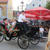 Dem Ausmarsch schlossen sich auch heuer wieder zahlreiche Vereine und nicht zu vergessen die Hallertauer Hopfenhoheiten – selbstverständlich geleitet in der Kutsche – an. Die „Wolfsegger Buam“ spielten sich schon mal warm, als es dann gegen 19 Uhr ernst wurde. Bürgermeister Sepp Reiser hieß zunächst alle Festgäste und Vertreter der Hopfenwirtschaft im prall gefüllten Zelt bei saunaähnlichen Temperaturen willkommen.