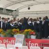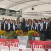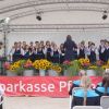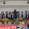 War es am Anfang durch mehr kirchliche Werke oder französisches Liedgut der klassischen Art, eher feierlich, so wurde mit einem ABBA Potpourri die Stimmung richtig angeheizt. Immer mehr Sänger*innen, erklommen in einer gut geordneten Reihenfolge die Sparkassenbühne, so das zum Ende hin, gut 70 Stimmen in die Gartenschau hinauseilten.