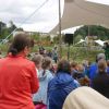 Theater auf der Gartenschau Pfaffenhofen, zum Geburtstag viel Glück, das Zelt im Bürgerpark ist dicht umlagert, ein Huhn feiert Geburtstag. Schneewittchen, das schönste Huhn im Dorf, feiert schon seit Monaten jeden Tag Geburtstag und an' s Eierlegen denkt keiner mehr.