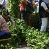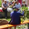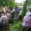 Ganze Menschentrauben stürzten sich auf die frisch gerissenen Reben, einige um beim Zupfen zu helfen, viele aber, weil sie noch nie Hopfen in dieser Form in Händen hielten. Da wurden die Dolden zerrieben und die Nase bemüht, der klebrige Blütenstaub bemerkt und die kunstvolle Drehung der Rebe begutachtet.