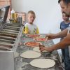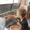 Da das nur wenige schafften, zeigte der Chef, wie man die fehlenden Pizzaböden innerhalb von Rekordzeit vorbereitet, die die Kinder dann belegen und nach Belieben geschmacklich verzieren sollten. Neben den Standardzutaten wie Tomatensoße, Käse, Salami oder auch Schinken, gab es ebenso eine große Auswahl an „Exotischem“. Oliven, Ananas, Peperoni, und Pilze waren aber die Favoriten.