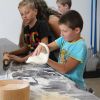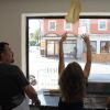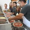 In der Pizzeria Calabria konnten sich zwölf Kinder in jeweils zwei Sechsergruppen aufgeteilt, unter der Aufsicht des Chefs höchst persönlich ihre eigene Pizza machen. Dass das jedoch gar nicht so einfach werden sollte, zeigte sich schon gleich am Anfang. Allein schon beim Formen des Pizzateiges, den Rexhep Ajvazi als einer der einzigen in der Hallertau komplett ohne Hefe herstellt, hatten die meisten Probleme. Trotzdem versucht er, allen Kindern zu zeigen, wie man den Teig ausrollt, formt und woran die Kinder am meisten Spaß hatten, wie man ihn hochwirft, um ihn vom übrigen Mehl zu befreien.