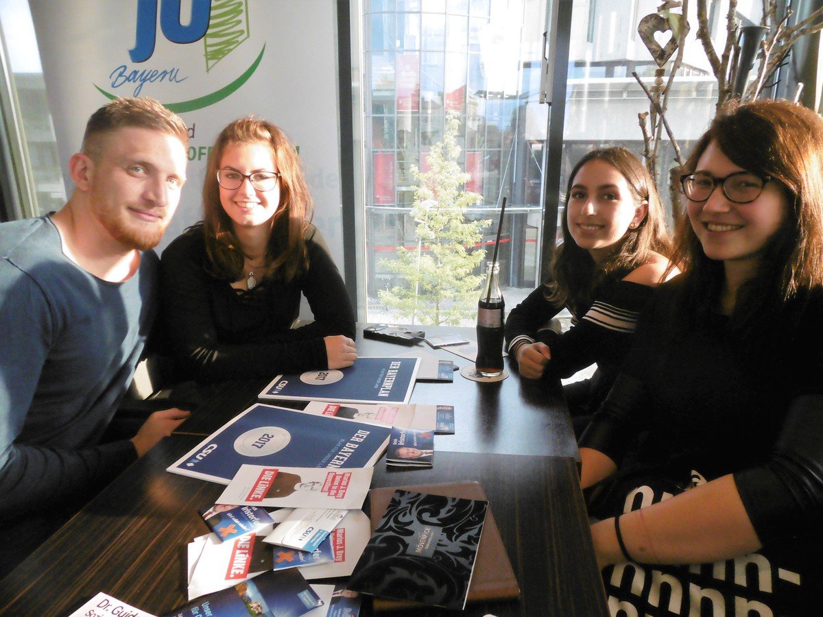 v.l.n.r.: Patrick 28 Jahre, Vroni 22 Jahre, Ananya 19 Jahre und Theresa 21 Jahre freuten sich auf einen Diskussiionsrundenaustausch und das anschließende TV-Duell.
