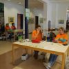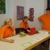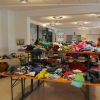 In der großen bunten Aula der Grundschule sieht es aus wie in einem Kaufhaus, nur das eben die Sachen gebraucht sind und keinem Preisdiktat folgen. Das Team, deutlich an den orangen T-Shirts zu erkennen, hilft freundlich weiter und legt auch unermüdlich die zerwühlten Kinderklamotten wieder zusammen. Mit riesigen gefüllten Plastiktüten bepackt, verlassen glückliche Mütter, denn die sind die Hauptkundschaft, den Ort der günstigen Gelegenheit.