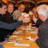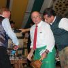 stoßen im Biertempel gemeinsam auf die erste frischgezapfte Maß an (v.l.): Festwirt Peter Schöniger, Bierkönigin Angela Ertlmaier, Bräu Wolfgang Randeltshofer, Sepp Reiser, Hopfenkönigin Melanie I. aus Elbe-Saale und Hopfen-Vize-Queen Katharina Schinagl