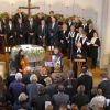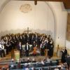 Luthers "Morgensegen", seine Tischreden, dazu Pfarrer Spanos, im Zwiegespräch mit Bassbariton Raphael Sigling in Martin Luthers Rolle. Stefan Daubner als Dirigent des Chores, der Orgel und des Posaunechors, mit Unterstützung von Peter Greiner, jonglierten die schwierigen Noten des Musikprofessors durch die Weite des Kirchenschiffes. Die Besucher wurden Teil des Geschehens, an sie war die Botschaft gerichtet. Mit dem gemeinsamen Vaterunser und dem Wunsch nach Frieden, wurde das gewaltige Finale eröffnet.