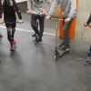Dabei lernten die Teilnehmer ihren Scooter zu beherrschen, verschiedene Rampen in der Skatehalle zu befahren und einfache Tricks zu meistern. Am Anfang geht es um das richtige Stehen auf dem Roller oder Scooter, der Fuß sollte etwas quer zum Brett platziert sein um auch bei schwereren Tricks die Balance zu halten.