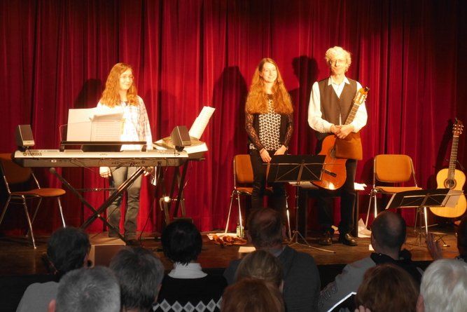 Die Veranstaltung im Pfaffenhofener Haus der Begegnung am Tag vor Weihnachten, hat eine gewisse Tradition, wird aber, von Günther Hausner immer wieder neu arrangiert. Mit seinen Töchtern, Franziska am Keyboard und Barbara an den Blockflöten, zieht der Musiklehrer jedes Jahr ein treues Publikum an.