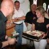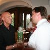 Wolnzach, 27.06.08 (ted). Auf diese Ausstellung der Galerie P. ist selbst Bürgermeister Jens Machold stolz: Bei der Vernissage am Freitagabend übernahm er die Begrüßung der vielen Gäste. Kulturreferent Alois Siegmund stellte die 3 Künstler vor: Michael Königer aus Mühlhausen / Rocksdorf (Bildhauer & Steinmetz z. B. des Geldspuckers, Helmut Raum aus Painten (Köpfe-Skulpturen) und Enno Messerschmitt aus Attenkirchen / Wimpasing, der auf Fliesen malt und sie dann bei 800° einbrennt. Er ist von Beruf Grafiker & Siebdrucker. Ein 2-Meter-Mann. Gastgeberin Nathalie Ponsot dankte allen, gratulierte ihrem Lebensgefährten Siegfried Vogl-Wolf zum 57. Geburtstag – er half wie immer als Mann hinter der Theke.