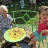 Zum Glück spielte auch das Wetter mit. Im riesigen Garten waren überall schön dekorierte Biertische aufgestellt, es wurden Würstl und türkische Spezialitäten gegrillt, Pizzas in Kleinformat gebacken, es gab Rollbraten und verschiedene Salate, und zur Nachspeise Kaffee und selbstgebackenen Kuchen.