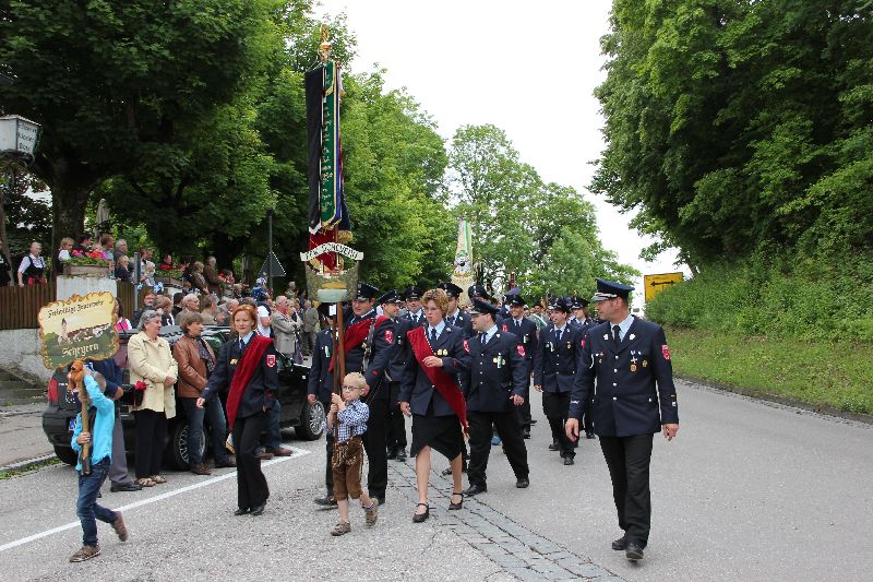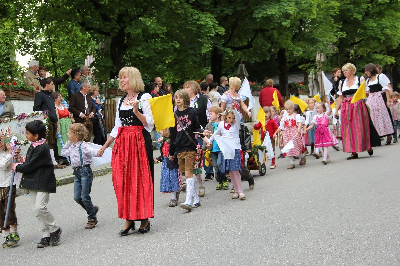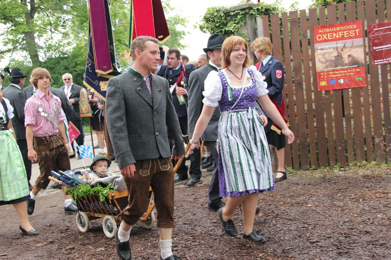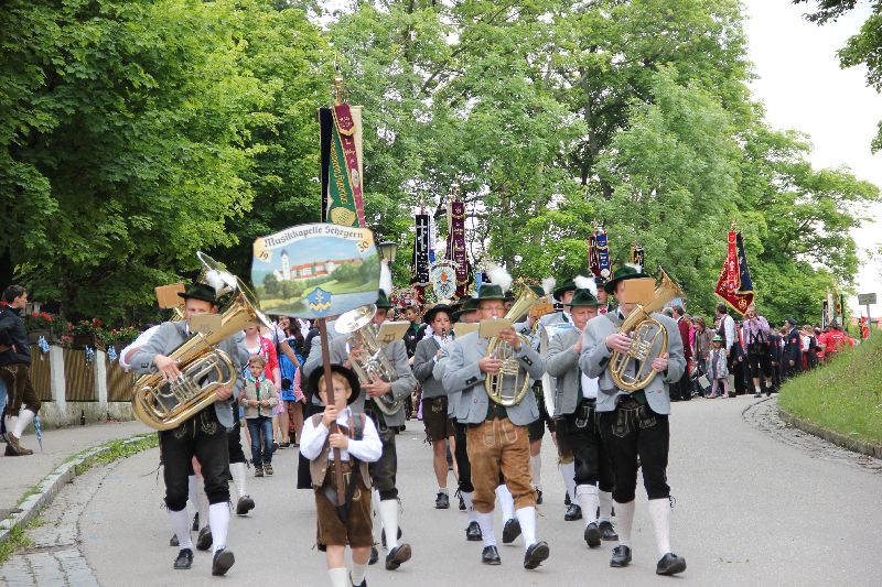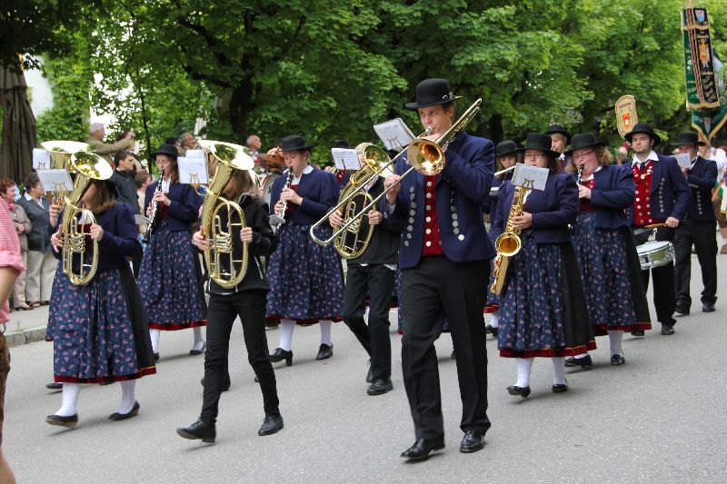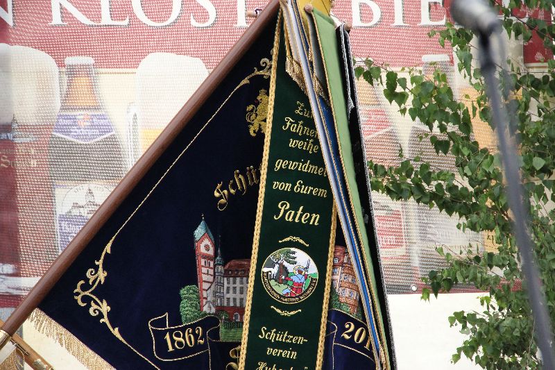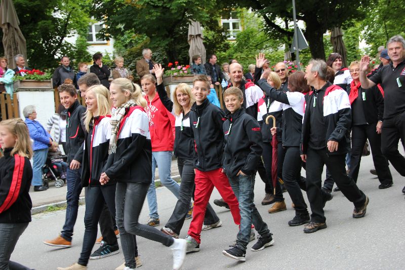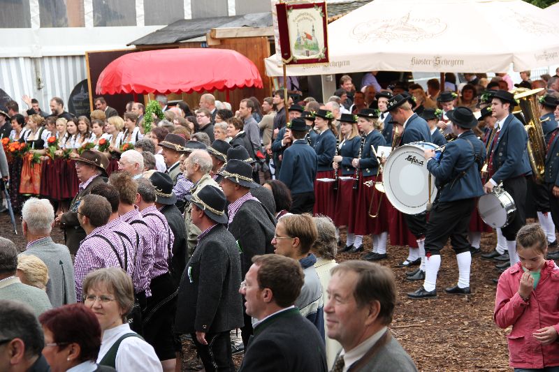 Die Böllerschützen Ilmmünster läuteten den Festumzug um kurz nach 14:00 ein. Begleitet von 5 Musikkapellen machte sich der Umzug angeführt von Bürgermeister Müller und Landrat Wolf nebst Gattinnen sowie Pater Benedikt als Vertreter des Klosters auf den Weg durch den Kloster-Innenhof hinunter zur Mariensäule, dann zur Grundschule und zurück zum Festzelt im Klostergarten. Eine halbe Stunde dauerte es vom Beginn, bis der letzte Verein sich auf den Weg gemacht hatte.
