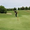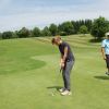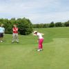 Voller Eifer übten die Rittersleut` denn auch auf dem weitläufigen Trainingsgelände des Clubs. Die Ritter schlugen sich auf der Driving Range und dem Chipping Grün für die großen Flächen des Platzes warm und gaben den Knappen anschließend auf dem Putting Green erste Einweisungen in das Kurze Spiel – das Einlochen des kleinen weißen Balls. Zur Mittagszeit starteten die Flights aus jeweils drei Teams, auf das über vierstündige 18 Löcher-Gefecht auf den großen Turnierplatz. Während sich manche Ritter den Fahnen auf den Grüns mit graden Schlägen näherten, übernahmen es andere ihren Flightpartnern auch die idyllischen Blumenwiesen und schattigen Wälder zu zeigen: Sie verhalfen ihren Bällen zu einer kurvenreichen Flugbahn fernab des Fairways. Im sogenannten Rough wurde dann emsig und meist erfolgreich nach den verschwundenen Bällen gesucht. Die tapferen Ritter konnten sich großer Anerkennung sicher sein, wenn es ihnen gelang, das runde Fundstück mit einem einzigen Schlag aus dem kniehohen Gras oder dem dichten Nadelwald zu befördern. Endlich auf den kurz geschorenen Grüns angelangt, oblag es den Golflaien ihrem Knappendienst nachzukommen und mit möglichst wenig Putts die Kugel einzulochen. Auch wenn unbeteiligte Beobachter den Eindruck haben konnten, dass mancher Ball schließlich eingelacht und nicht gelocht wurde, schadete das den insgesamt doch guten Spielergebnissen nichts. So konnte Turnierleiter Daniel Stern am Ende des Tages acht Gewinnerpaare vorstellen, die sich riesig über die Preise und den vergnüglichen Wettkampftag freuten. Besonders stolz war der Jüngste der Runde – Ritter Moritz, der sich seinen Vater zum Knappen genommen und mit ihm den sechsten Platz erspielt hatte. Der Bub, der seit zwei Jahren bei der Golfjugend Holledau trainiert, wollte seinen Vater auch zum Golfsport verführen und gewann für ihn einen Schnuppernachmittag unter Anleitung eines Golftrainers. Und so wie der Vater des kindlichen Golfers nahmen sich viele Knappen vor, ihre Ausbildung zum Golfritter in der Holledau zu beginnen. In gelöster Atmosphäre und beim Nudelbuffet-Ritterschmaus endete der Tag im gnädigen Sommersonnenlicht auf der Terrasse des Golfclubs.