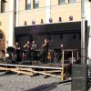 Nach kalten und trüben Tagen kam der Sommer zurück und mit ihm eilten viele Besucher zur Eröffnungsparty. Das neue Outfit konnte endlich aus dem Schrank geholt werden, und gleich dazu allerbeste Laune. Nach blinzelnden Begrüßungsansprachen von Bürgermeister Thomas Herker und Kulturreferent Steffen Kopetzky gegen die blendende Abendsonne und symbolischer 5.000 Euro Scheckübergabe von Sparkassenvorstand Norbert Lienhardt (Hauptsponsor) legte die Lehrerband der Pfaffenhofener Musikschule schmissigen Swing aufs Parkett.
