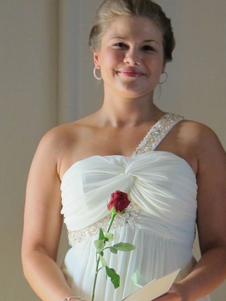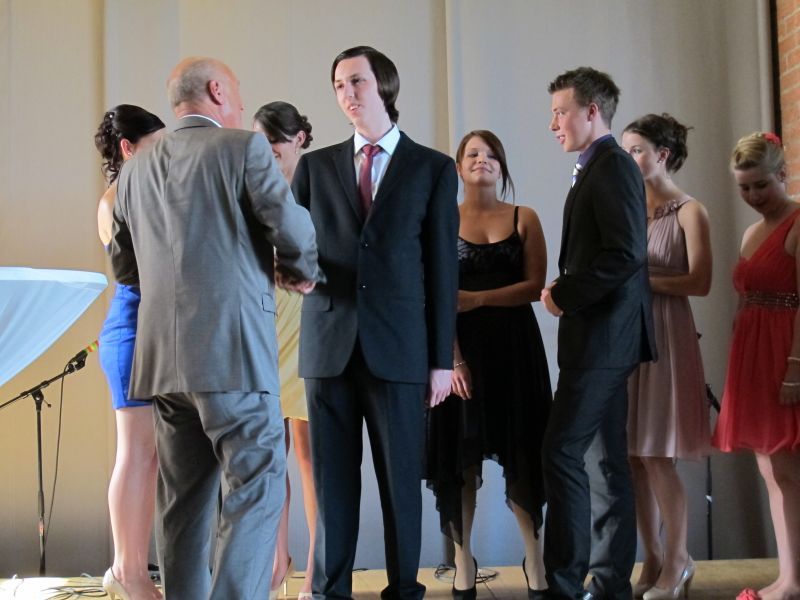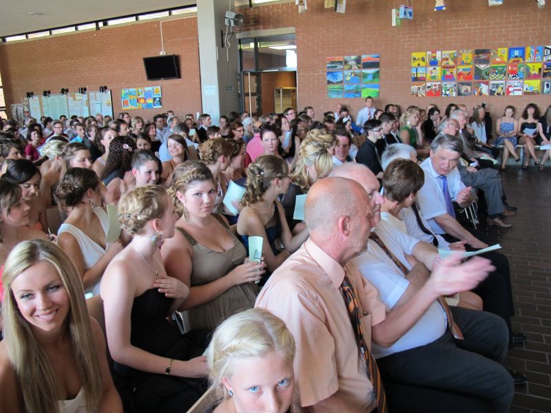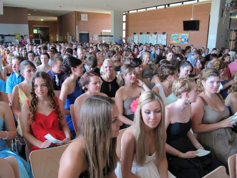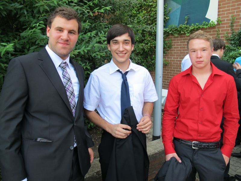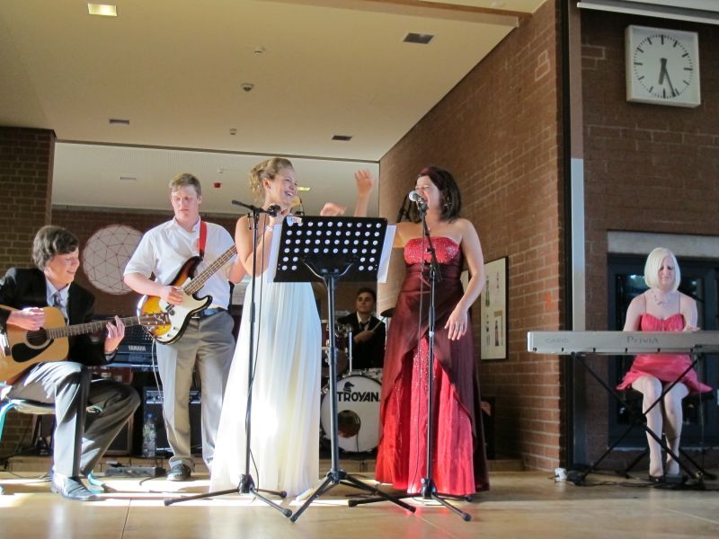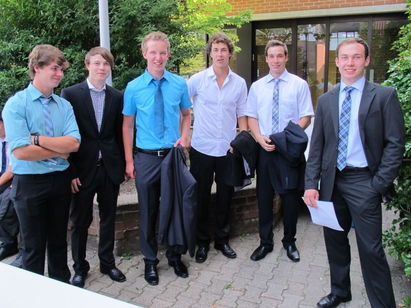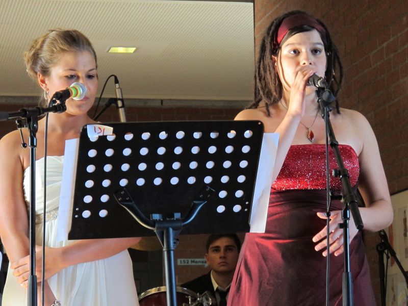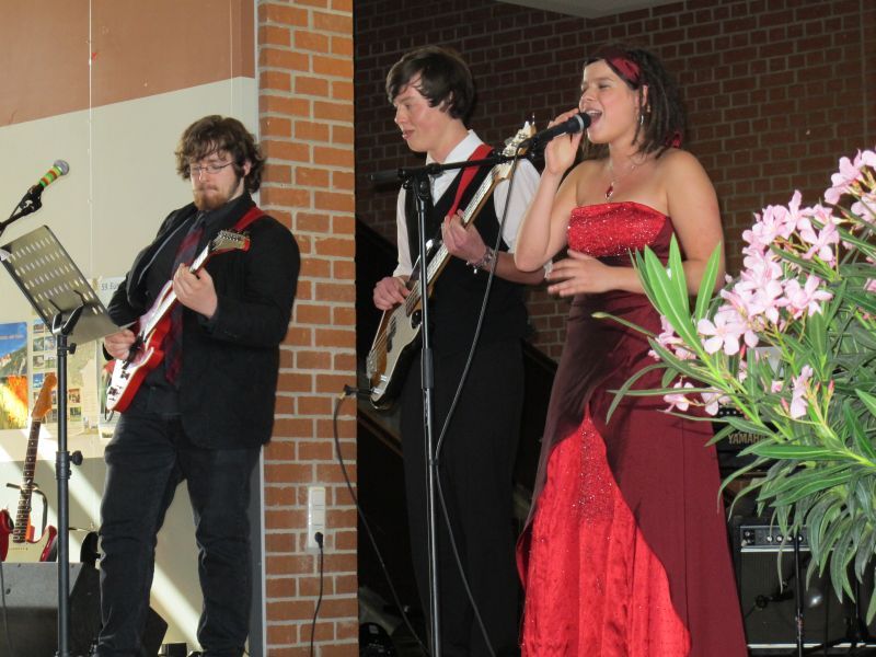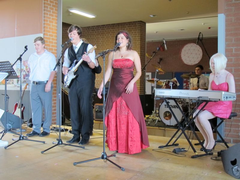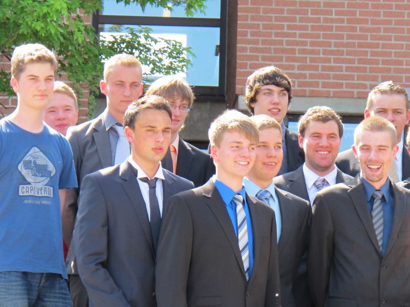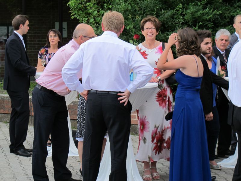 Bei der feierlichen Übergabe der Zeugnisse schüttelte Herr Ludwig jedem einzelnem die Hand, gratulierte noch mal zum bestandenen Abitur und überreichte dazu eine rote Rose. Mit einem Duett von Vanessa Löb und Isabella Ruppert war der offizielle Teil beendet und vor den Toren der Schule wurde mit Sekt und Orangensaft auf diesen Erfolg angestoßen.