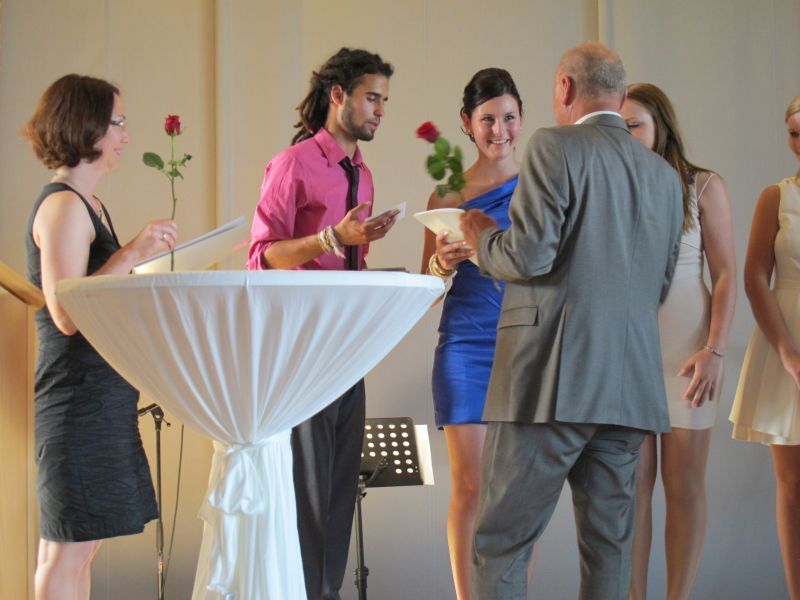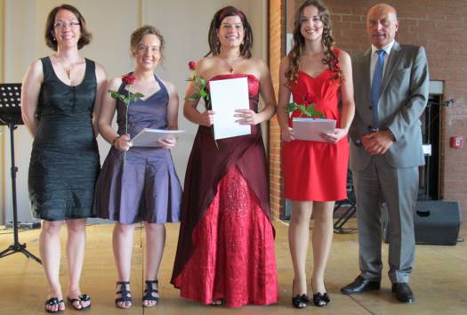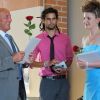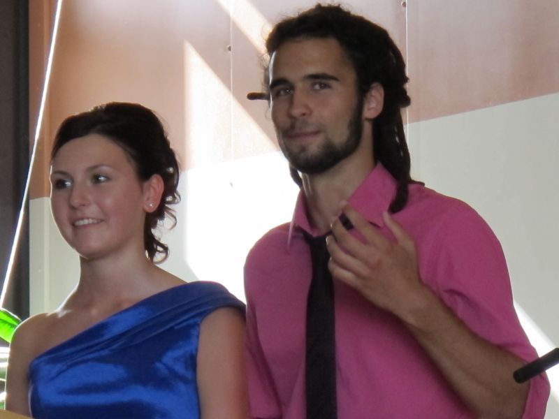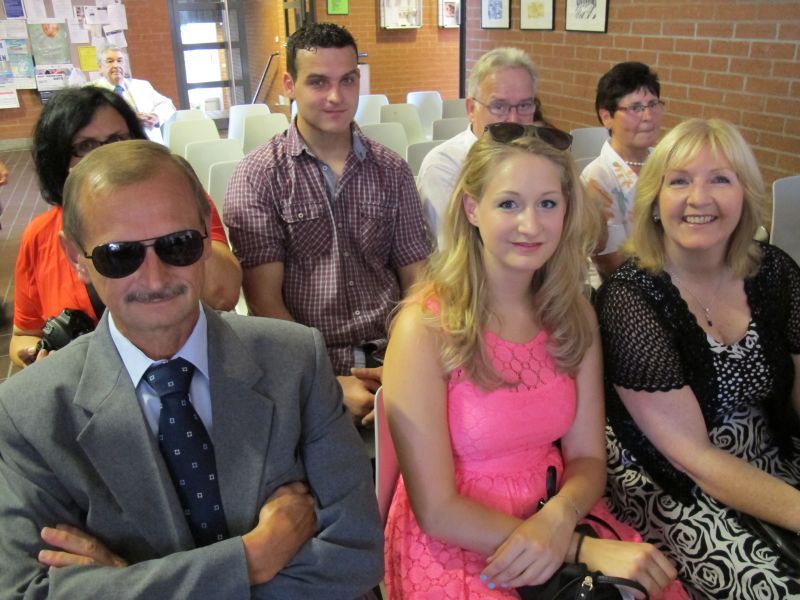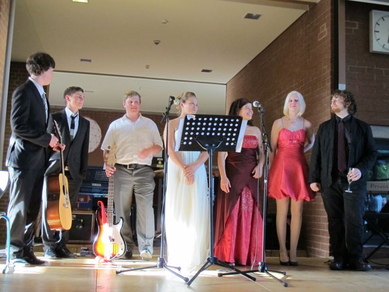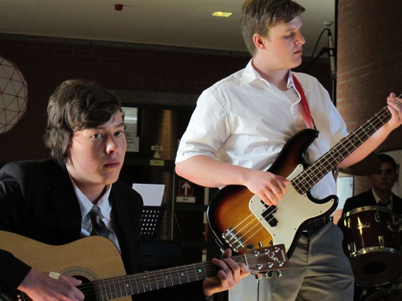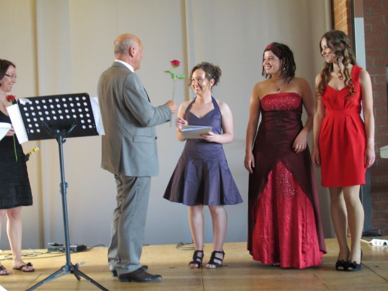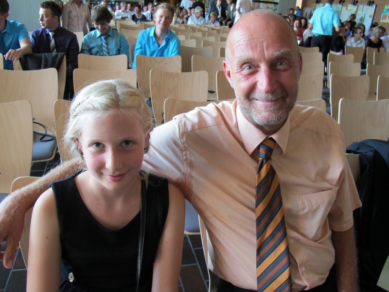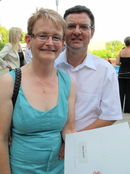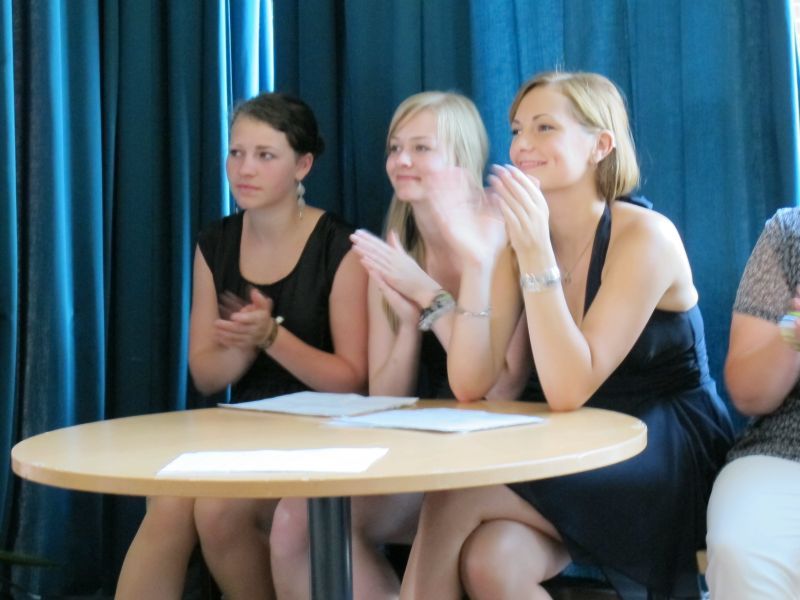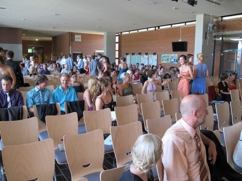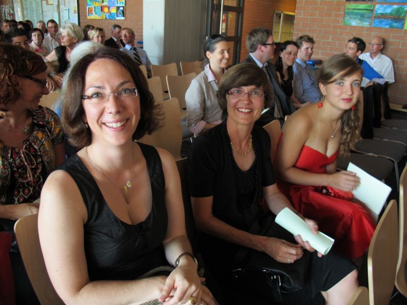 Bei der feierlichen Übergabe der Zeugnisse schüttelte Herr Ludwig jedem einzelnem die Hand, gratulierte noch mal zum bestandenen Abitur und überreichte dazu eine rote Rose. Mit einem Duett von Vanessa Löb und Isabella Ruppert war der offizielle Teil beendet und vor den Toren der Schule wurde mit Sekt und Orangensaft auf diesen Erfolg angestoßen.
