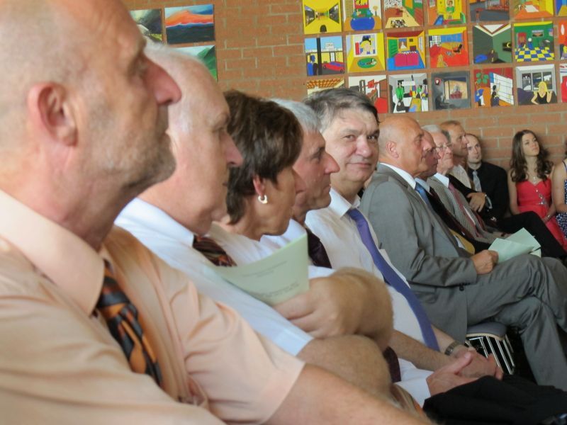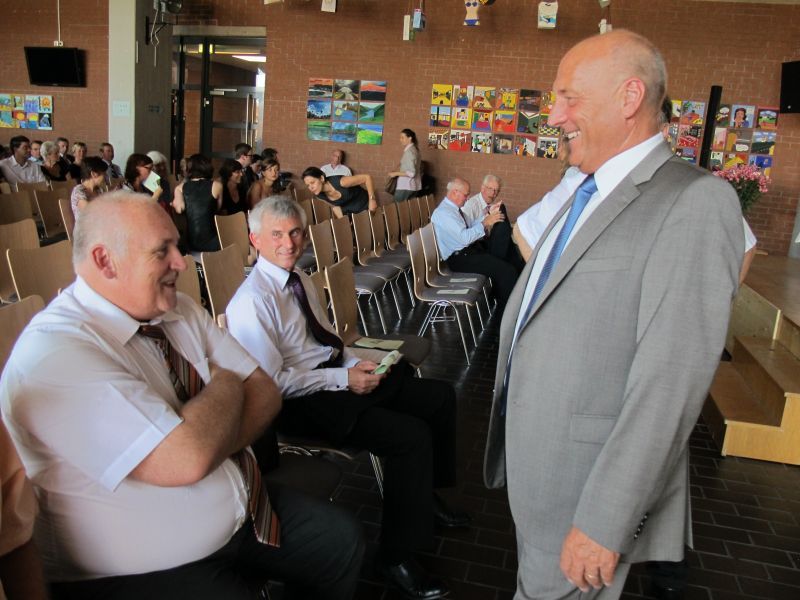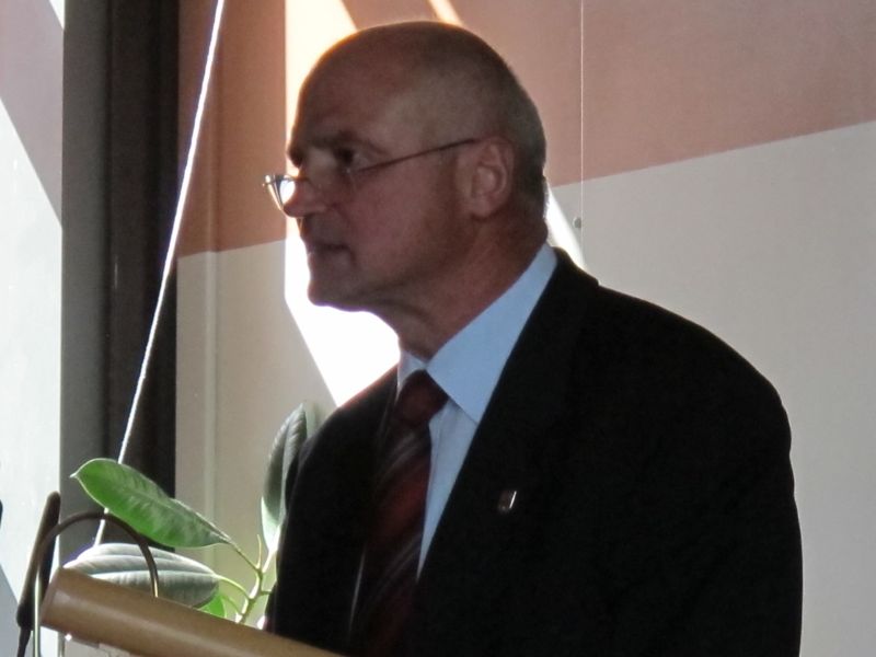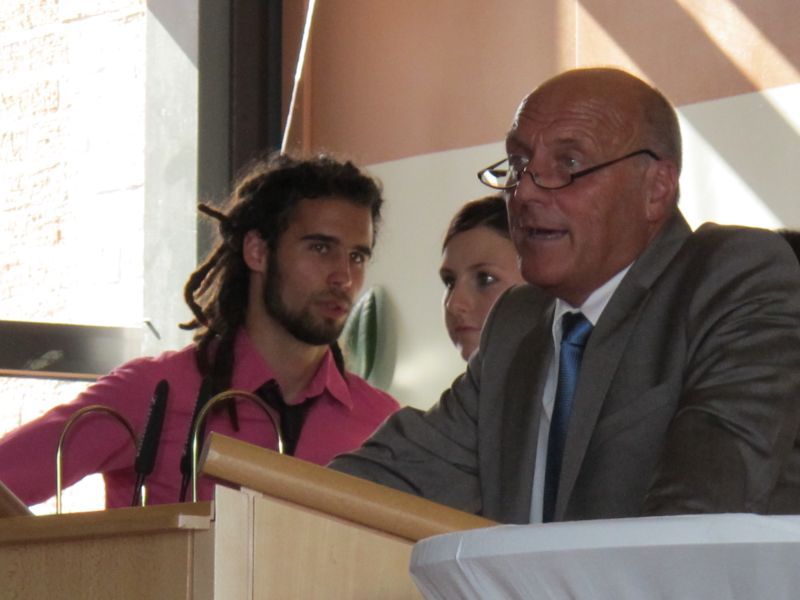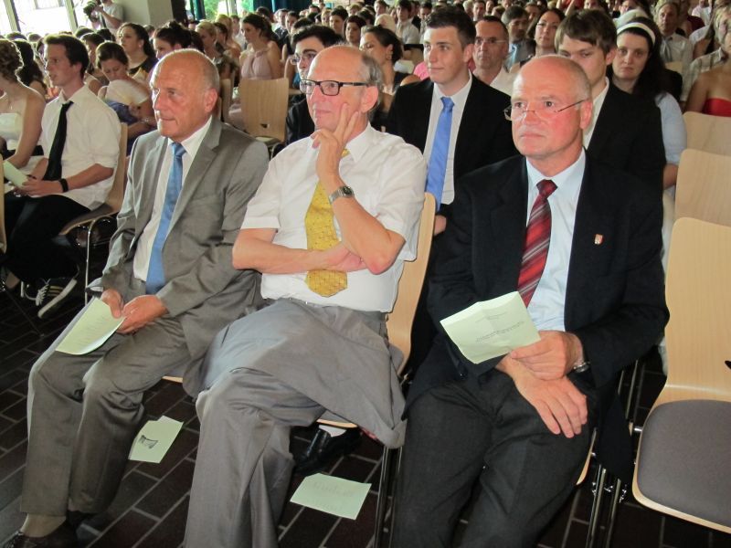 Herr Ludwig sprach anschließend die etwas längeren Geleitworte. Er bedauerte die Umstellung der bayerischen Gymnasien vom „G9“ ins G8, da es deshalb eine radikale Kürzung des Lehrinhalts gab und er einen allgemeinen Verlust der Studierfähigkeit befürchtet. Nichts desto trotz ist er überzeugt, dass auch die Schulabgänger von 2012 es mit diesem Grundstock, den sie sich in den acht Jahren Gymnasium erarbeitet haben, egal ob im anschließendem Studium oder Beruf, sehr gut zurechtkommen.