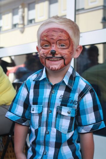 „Wieder einmal war der Kindertag ein voller Erfolg“, so Julia Holzvoigt, denn nicht nur beim Wetter bewies man in diesem Jahr ein goldenes Näschen, sondern auch die zahlreichen unterschiedlichen Aktionen für Kinder lockten wieder viele ins Wolnzacher Zentrum. Besonders begeistert waren die Kleinen aber vom Kinderschminken, so traf man entlang der ganzen Straße auf kleine Löwen, Prinzessinnen, Spinnen oder auch Katzen.