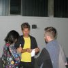 Benedikt Hipp übernahm es, den Künstler vorzustellen: Eigenwillig, mit dem Rücken zum Publikum, trug er ein rotes Megaphon auf der Schulter und speiste dies, mit ihm zur Skulptur verschmolzen, mit seiner Stimme aus dem Handy, die einen von Wolfgang Kaiser inspirierten Text rezitierte: von wahnhaften Träumen auf den Inseln St. Helena, Sizilien und Elba, von schaukelnden Schiffen, von Barken mit geheimnisvoller Fracht, von der Madonna aus Lourdes und ihrer schwarzen bajuwarischen Schwester.