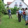 Wenn einem dies alles über dem Kopf wächst, ist der Schnitt im August eigentlich ein Geheimtipp, denn er erlaubt es, die Pflanzen in all ihrer Pracht zu erhalten: Nachdem die unnützen Triebe im Sommer weggeschnitten sind, kommen sie nicht so schnell wieder. Der Augustschnitt wird für viele Bereiche des Gartens empfohlen: für Obst- und Buchsbäume, Blütenpflanzen und Sträucher. In den Gärten der Familien Tolaci und Reich zeigte Diplomingenieur Thomas Janschek, eingeladen vom Gartenbauverein Niederlauterbach, den knapp zwanzig Teilnehmern, wie man sachgemäß mit der Gartenschere hantiert – und mit einfachen Mitteln mehr von der blühenden Pracht hat.