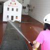Nach dieser Führung waren die Jungs und Mädchen dann auch selbst gefordert, denn sie durfte selbst zum Löscheinsatz. Man konnte deutlich das Strahlen in den Augen der Kleinen erkennen, als sie zum ersten Mal selbst den Schlauch in der Hand hielten. Anschließend ging`s für die kleinen Besucher dann noch einmal hoch hinaus. Von der Drehleiter aus konnten sie einen Blick über die Metropole der Hallertau werfen. „Super, ich habe ganz Wolnzach gesehen“, so der kleine Patrick, der in einigen Jahren selbst einmal zur Feuerwehr will.