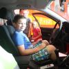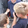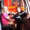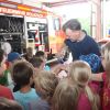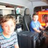 Doch schon nach wenigen Minuten durften die Kleinen das Klassenzimmer wieder verlassen und in dem Feuerwehrfahrzeug Platz nehmen. Vom Einsatzfahrzeug des Kommandanten über das LF 8 bis hin zur Drehleiter, keines der Fahrzeuge ließ man aus. Und so durften die Kids auch schon einmal das Blaulicht und die Sirene einschalten.