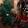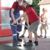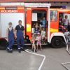 Was muss ein Feuerwehrmann alles können? Wie oft rückt man pro Jahr aus? Fragen die die kleinen Besucher brennend interessierten. So stand für die Jungs und Mädchen nicht nur eine komplette Führung durchs Feuerwehrhaus auf dem Programm, nein alle durften auf einmal selbst löschen, die Drehleiter besteigen und im LF 8 mitfahren – selbstverständlich mit Sirene und Blaulicht.