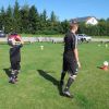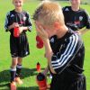 Jedes Kind bekam eine komplette Fußballausstattung, vom T-Shirt bis zu den Stutzen und von den Shorts bis zum Sweatshirt, damit sah man schon von weitem das große Team. Das sehr abwechslungsreiche Training machte allen großen Spaß. Es wurde getrippelt, Spielabläufe trainiert und in kleinen Spielen wurde das Gelernte sofort umgesetzt.