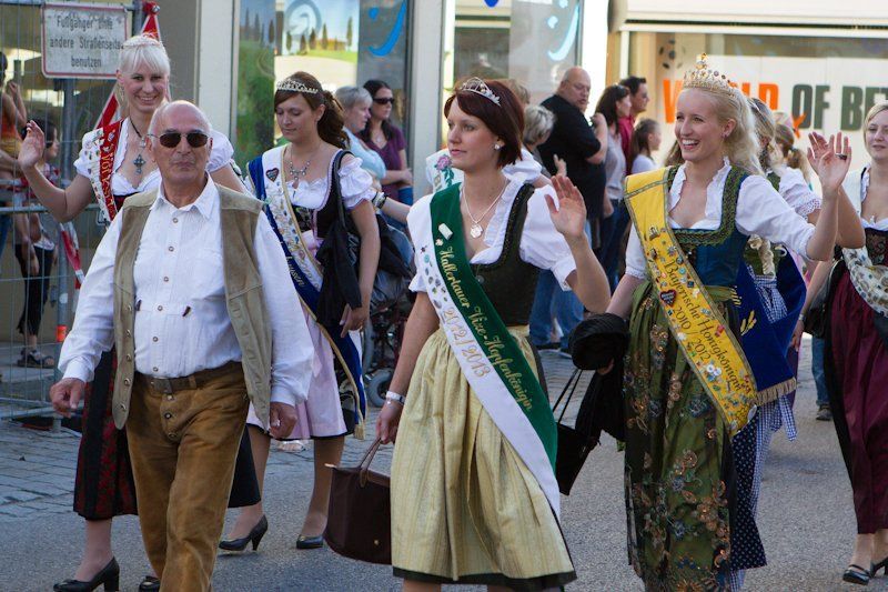 Der Festzug zur Pfaffenhofener Wies’n war dieses Jahr grandios. Zahlreiche Vereine und Ehrengäste sammelten sich dazu um 17:00 auf dem unteren Hauptplatz, um gemeinsam den Marsch zum Stiftlzelt anzutreten. Auf den Straßen warteten hunderte von Zuschauern - verpackt in Dirndl und Lederhosen – und klatschten und jubelten dem Zug entgegen. Das 64. Pfaffenhofener Volksfest bietet auch dieses Jahr jede Menge Fahrgeschäfte, Schießbuden, und Essensstände. Neu ist das sehnlichst erwartete Riesenrad, von dem aus man einen wunderbaren Panoramablick über das funkelnde Volksfest bei Nacht hat. Neu ist auch ein Flohzirkus, in dem die ganz kleinen Tierchen große Wunder bewirken und ein Vielfaches ihres eigenen Körpergewichts schleppen können.