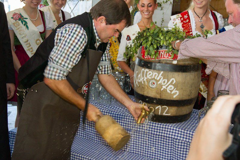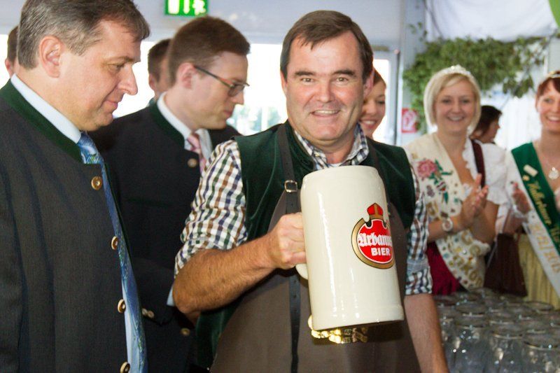 Zwar schaffte er nicht die zwei Schläge, die der Münchener Oberbürgermeister Christian Ude auf der Wies’n an den Tag legte, jedoch absolvierte der 2. Bürgermeister Albert Gürtner den Anstich souverän. Dieser musste antreten, da der erste Bürgermeister, Thomas Herker, wegen eines Termins verhindert war. Nach dem vierten kräftigen Schlag auf den Zapfhahn floss das edle Bier im Stiftlzelt und auch Landrat Martin Wolf nahm eine Maß Freibier entgegen.