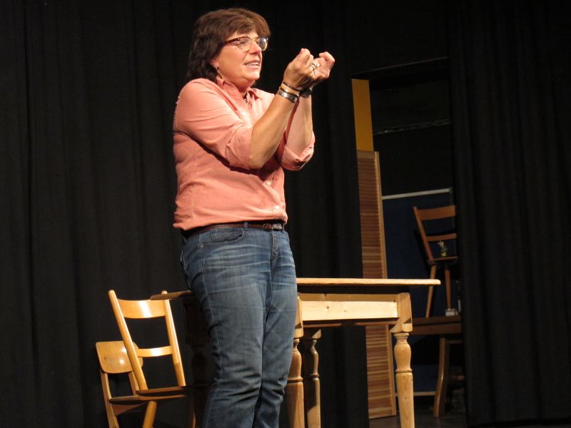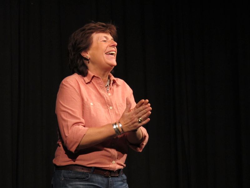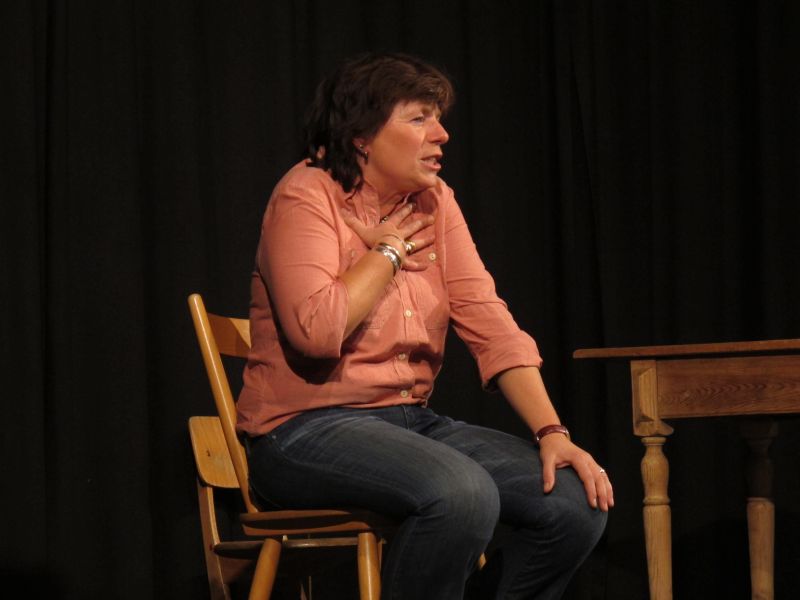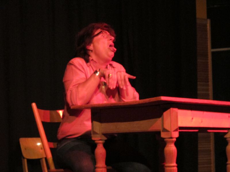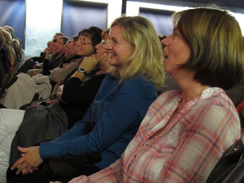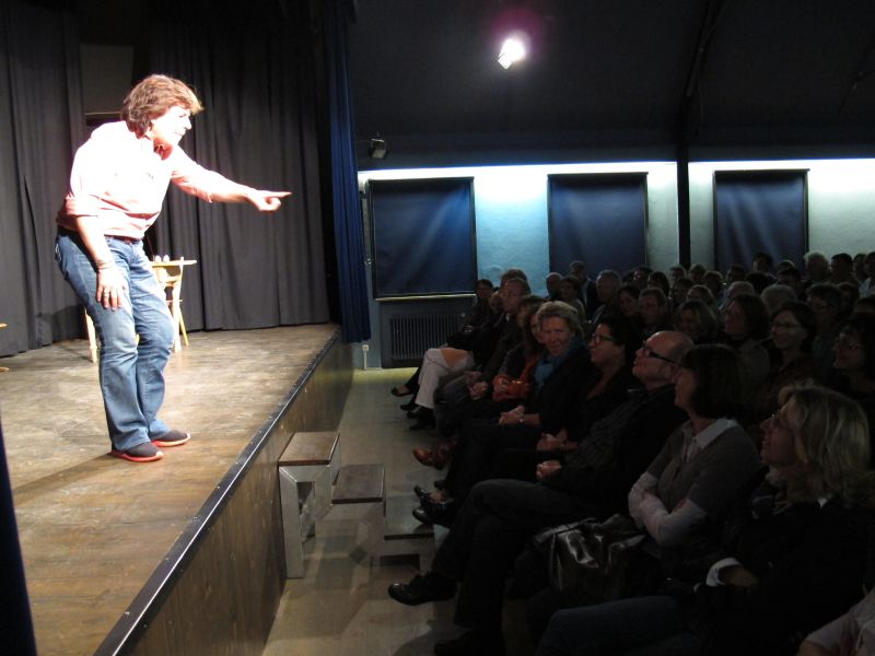 Im vollbesetzten Theater blieb kein Auge trocken. Schon nach den ersten Worten der Künstlerin bogen sich alle im Saal vor Lachen. Frau Kinsky plapperte immer weiter munter drauf los und nahm keine Rücksicht auf die mehr als strapazierten Lachmuskeln der Anwesenden.