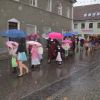 Monsunartige Regenfälle setzten kurz nach Beginn des Ausmarsches ein, was die zahlreichen Vereine aber nicht abschreckte. Mit Regenschirmen bewaffnet setzten sie unbeirrt ihren Marsch durch die Mainburger Innenstadt fort, nur in einem etwas schnelleren Tempo.