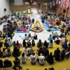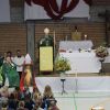 Hunderte Gläubige drängten sich in die Turnhalle der Mittelschule, saßen auf Matten und Turnbänken und verfolgten aufmerksam die Zeremonie, die trotz der eigentümlichen Räumlichkeiten, sehr feierlich abgehalten wurde.