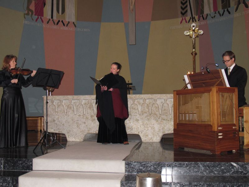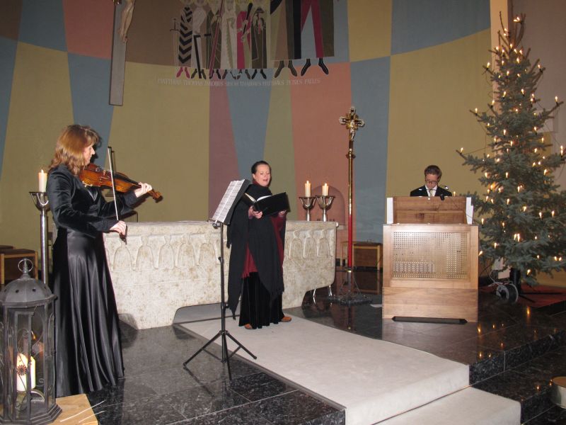 Die Violinistin Julia Fehre, die schon in zahlreichen Kammerkonzerten im In- und Ausland mitgewirkt hat und Volker Zapp, hauptamtlicher Kirchenmusiker der Pfarreiengemeinschaft in Kempten-West und ehemaliger Mainburger Kirchenmusiker, begleiteten die Sängerin mit ihrem meisterhaften Instrumentenspiel.
