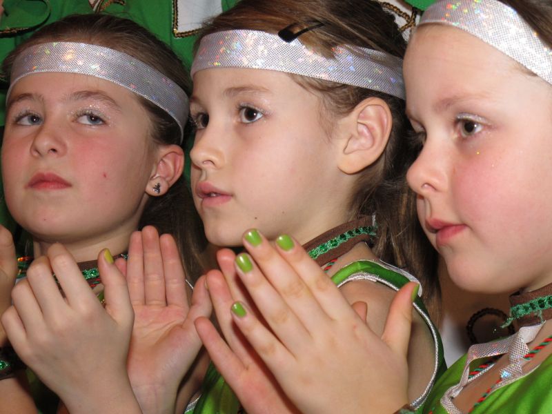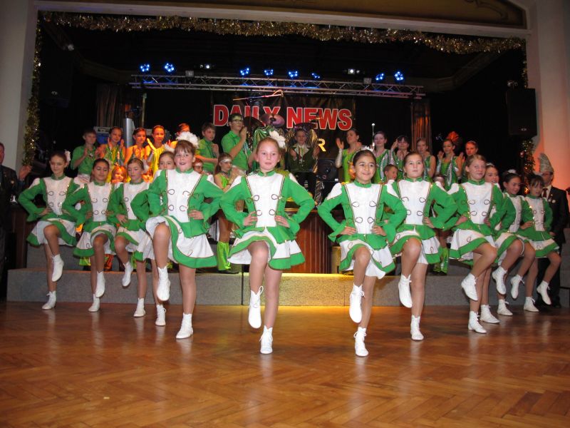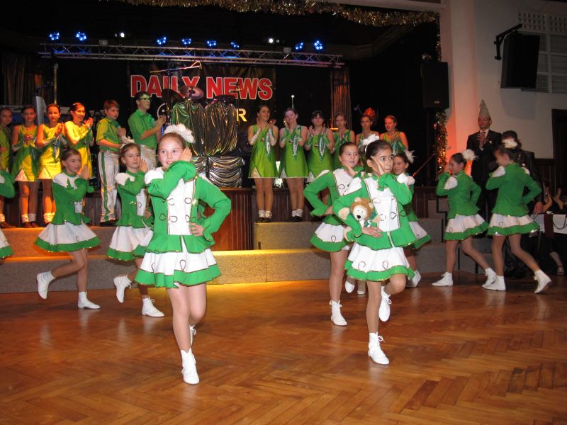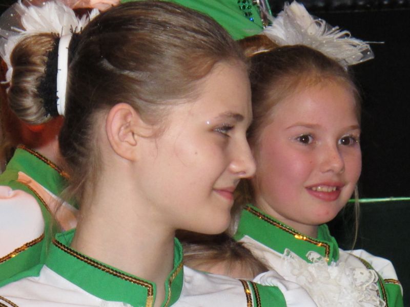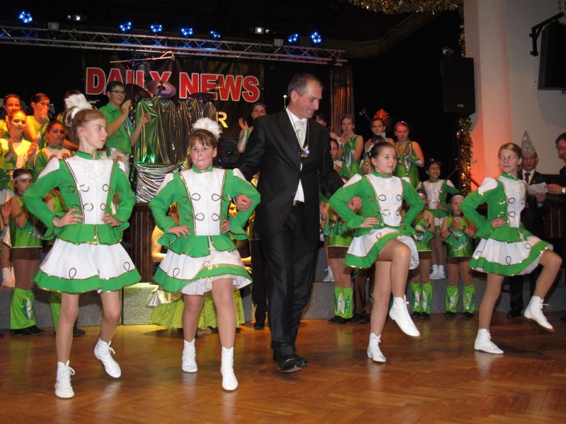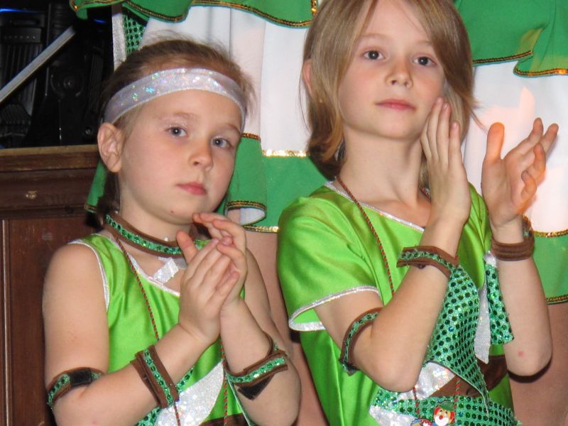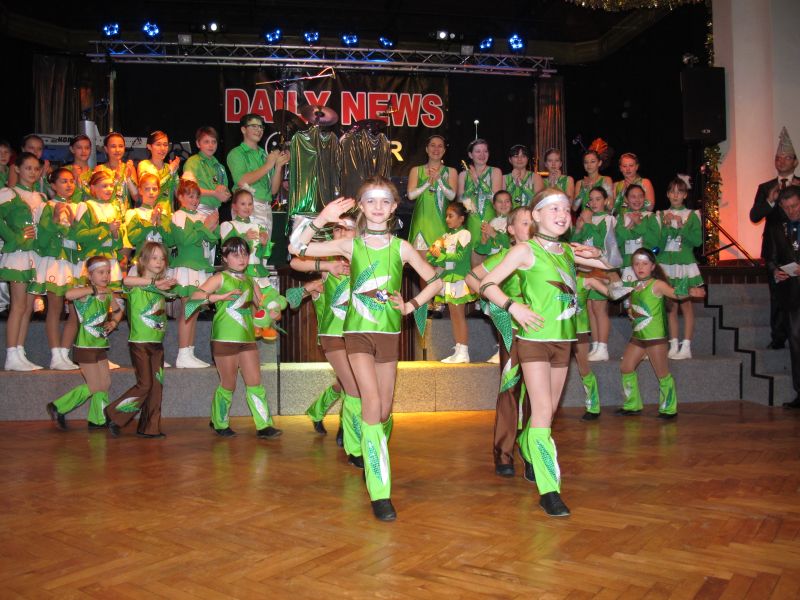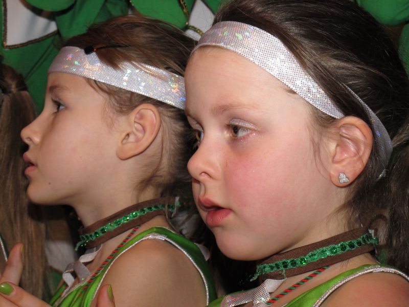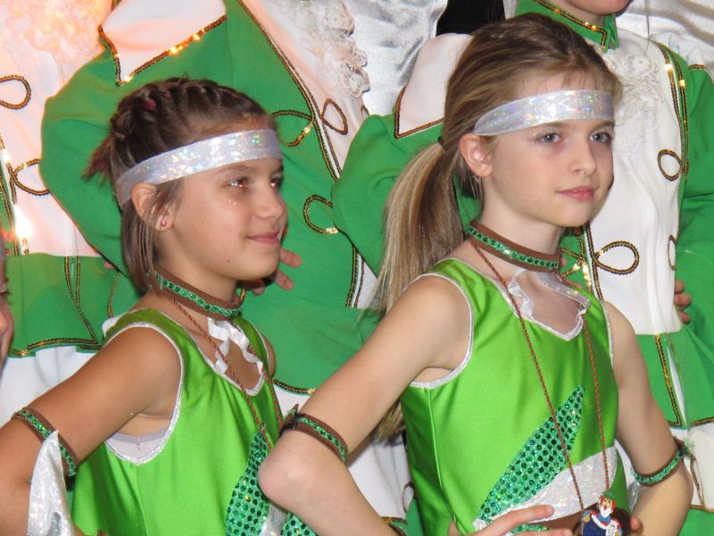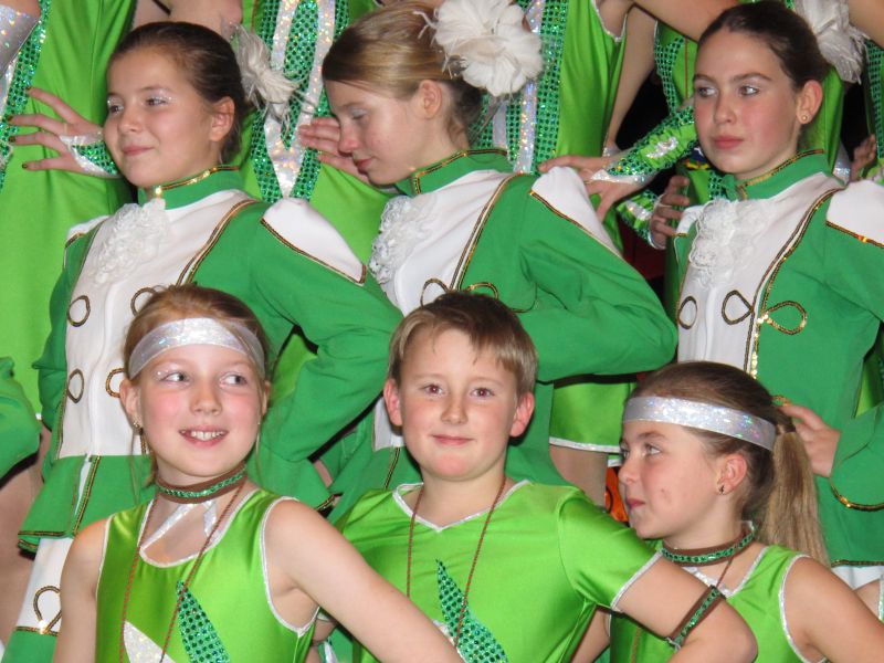 Die diesjährige Kindergarde, diesmal ganz in grün, hatte ihre einstudierten Tänze schon voll drauf. Im Gleichschritt marschierten und tanzten die kleinen Damen voller Leichtigkeit und mit einem strahlenden Lächeln auf den Gesichtern. Keine Spur von Aufregung war ihnen anzusehen und egal ob beim schlagen von Rädern, Spagaten oder waghalsigen Figuren, alles lief wie am Schnürchen.